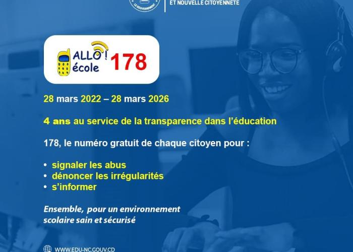 Depuis son lancement le 28 mars 2022, le service « Allô-École 178 » s’est imposé comme un outil clé de protection des élèves en République Démocratique du Congo. Mis en place par le Ministère de l’Éducation nationale et Nouvelle Citoyenneté (MINEDUNC), ce mécanisme permet aux élèves, parents et enseignants de signaler les abus, dénoncer les injustices et obtenir un suivi adapté.
